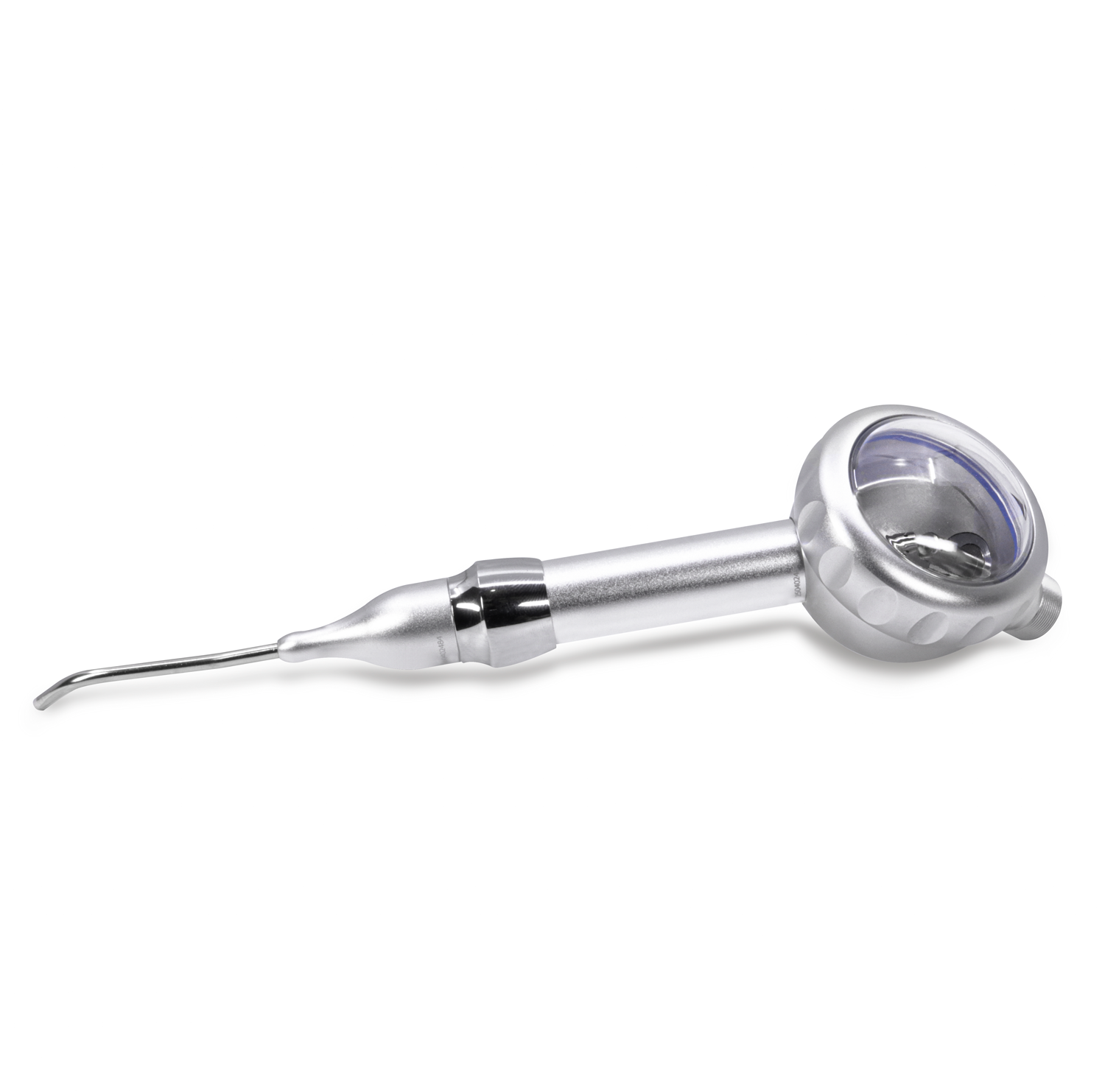 La Air Prophy Jet / Unidad de Profilaxis por Aire es una pieza de mano diseñada para la limpieza dental profesional mediante arenado controlado. Está indicada para eliminar sarro, manchas y pulir superficies del diente, proporcionando una limpieza eficaz y cómoda tanto para el operador como para el paciente.