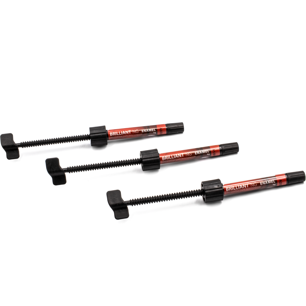 Gracias a la optimizada distribución de sus partículas, BRILLIANT NG es indicado tanto para sector anterior, con alto compromiso estético de brillo, pulido y acabado final; como para sector posterior, con extraordinaria resistencia a las fuerzas de masticación y el desgaste.