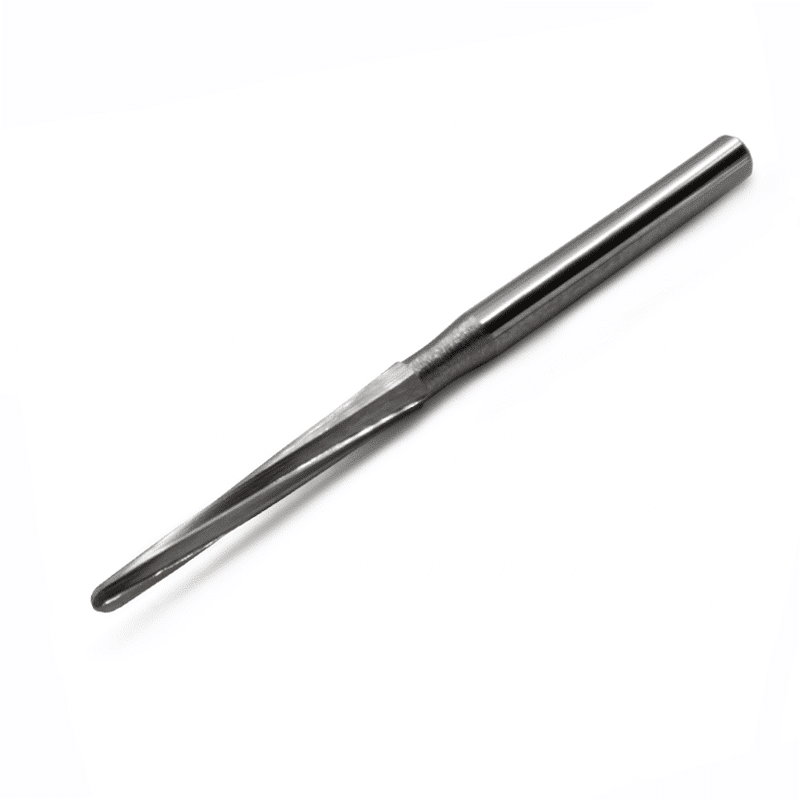 - Fresa tronco-cónica con parte activa lateral formada por 6 láminas helicoidales y punta activa redonda y cortante.