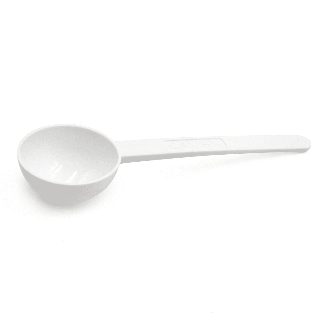 - Cuchara de dosificación con mango extra largo para una fácil eliminación del polvo.