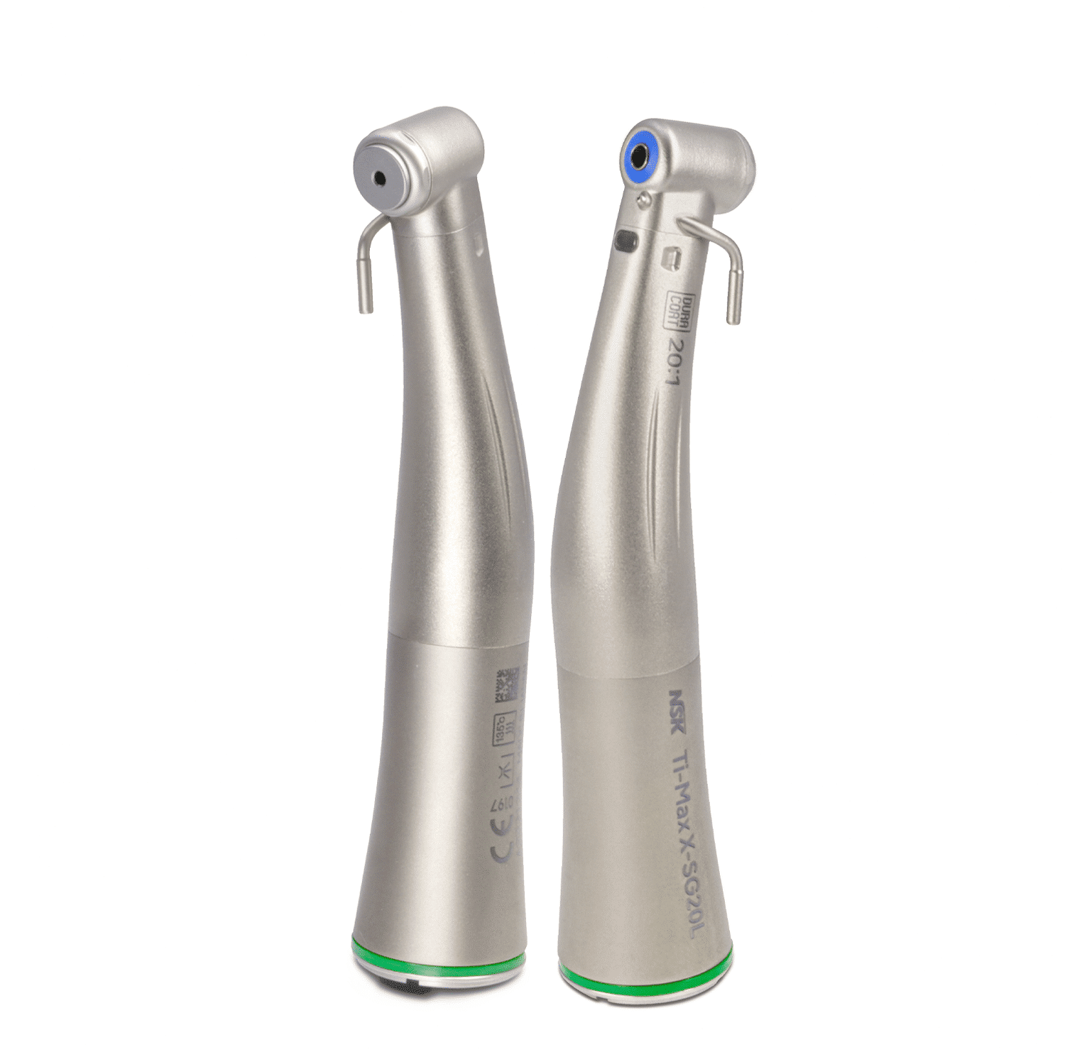 El contraángulo T-MAX SG20L de NSK está diseñado para ofrecer rendimiento y precisión en procedimientos dentales. Fabricado con una estructura robusta de acero inoxidable, cuenta con un sistema de engranajes de alta durabilidad. Ofrece una relación de reducción 20:1, ideal para trabajos de precisión en cirugía dental. Su diseño ergonómico y ligero reduce la fatiga del usuario, y la capacidad de esterilización a 135°C garantiza altos niveles de higiene. El sistema de irrigación externa permite una refrigeración efectiva durante el uso, mejorando la seguridad y comodidad del paciente.