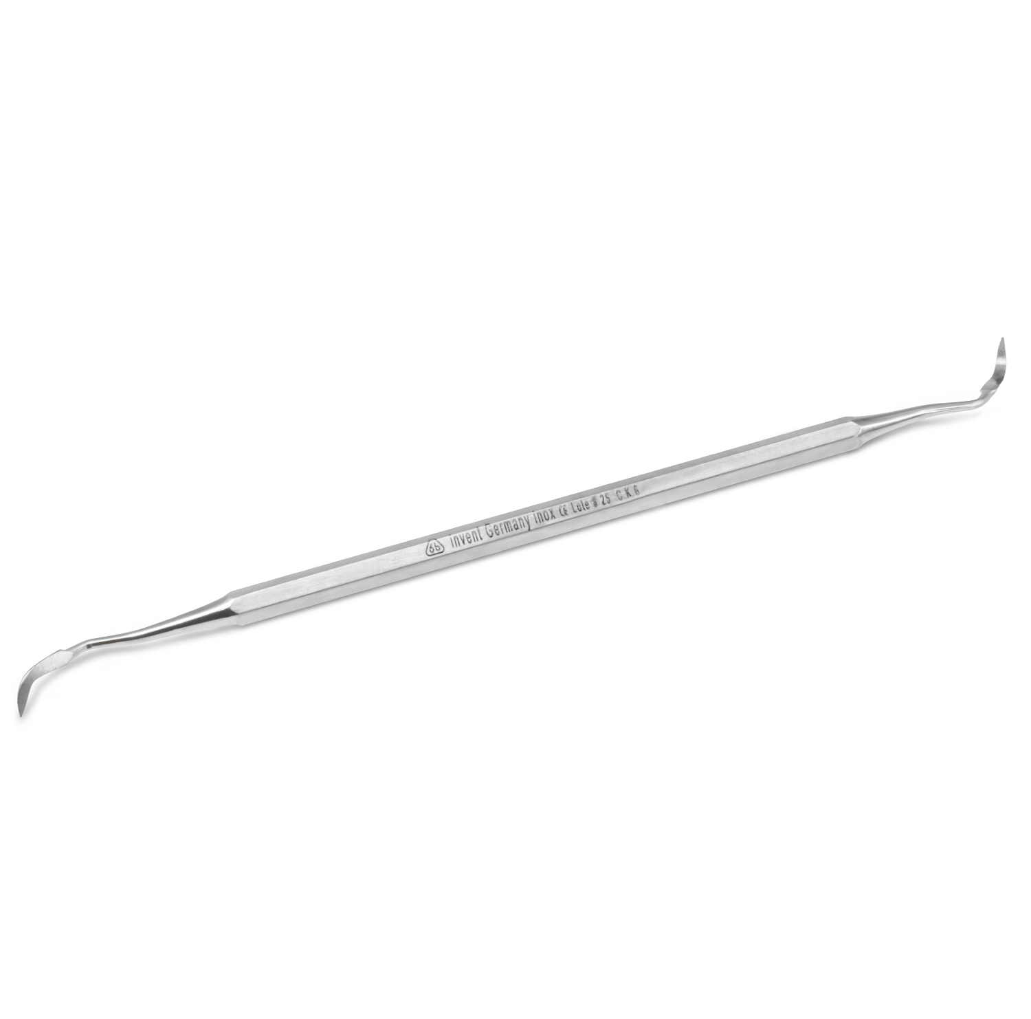 La CK6 (Crane Kaplan) 6b Invent Germany es una cureta periodontal de acero inoxidable de alta calidad, completamente compatible con autoclavado. Diseñada con mango hexagonal que proporciona un agarre firme y ergonómico, este instrumento facilita la eliminación eficaz de cálculo supragingival y subgingival, conservando precisión y reduciendo la fatiga del operador durante procedimientos prolongados.