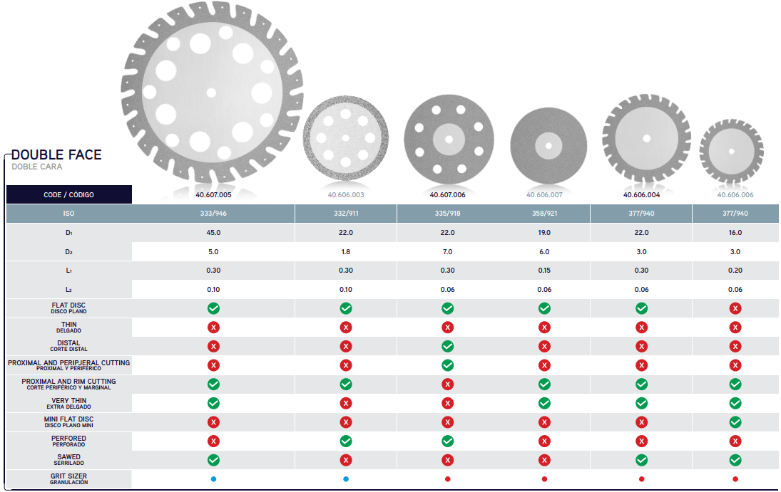 Los discos Microdont Diamond son adecuados para usar en prótesis o en algunas situaciones en dientes naturales, están indicados para el desgaste interproximal en ortodoncia o para reducir el tamaño de la corona cuando sea necesario.