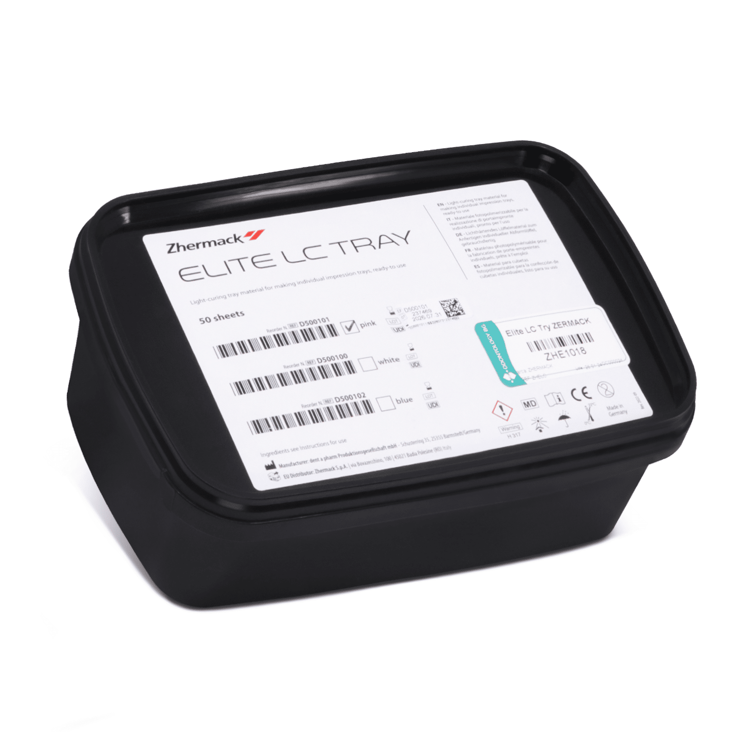 Elite LC Tray es la línea de placas de resina fotopolimerizable para cubetas individuales y bases protésicas removibles.