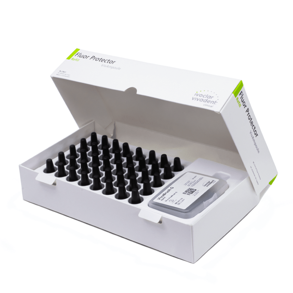 Fluor Protector es el barniz protector con fluoruro para el tratamiento de hipersensibilidad dental y prevención de caries a largo plazo.