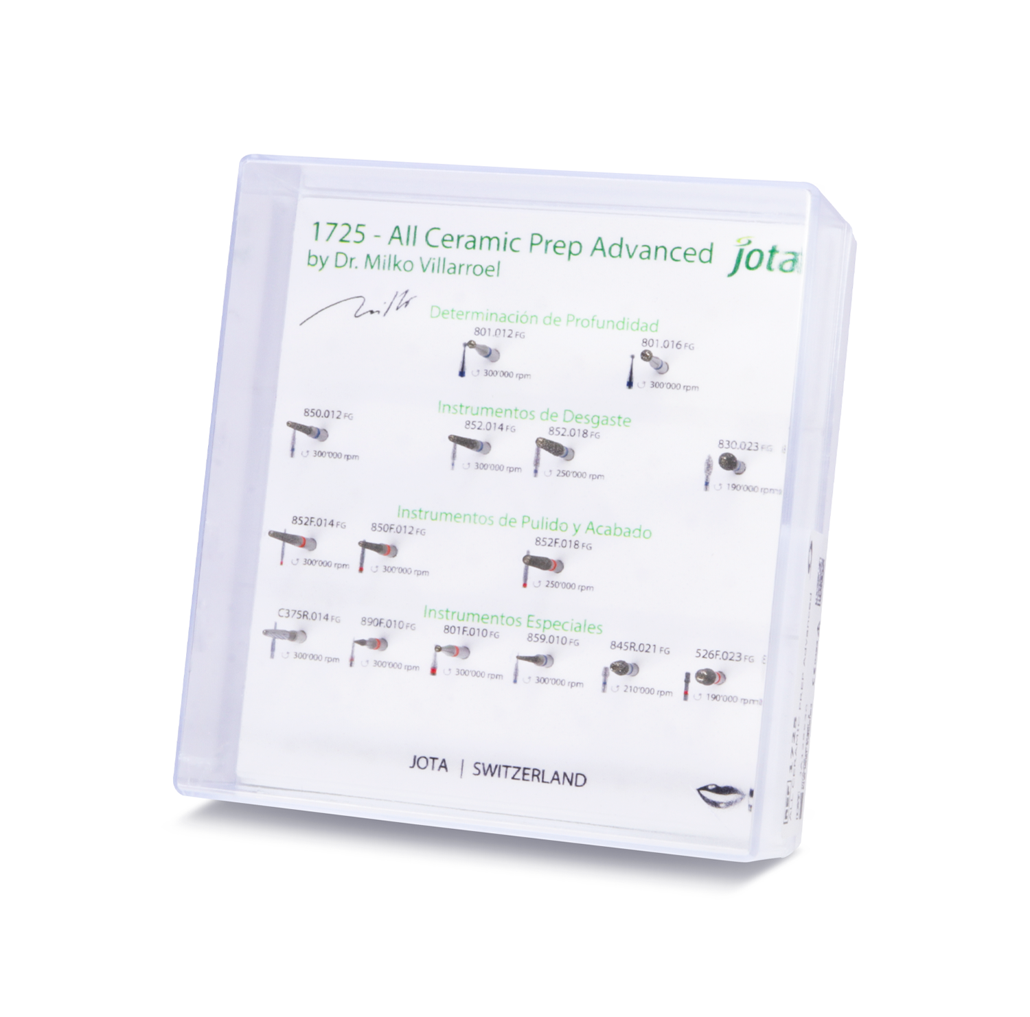 El kit cuenta con una detallada secuencia de instrumentos, correspondiente a cada uno de los pasos de la técnica para preparación de Coronas y Laminados cerámicos como se describe a continuación.