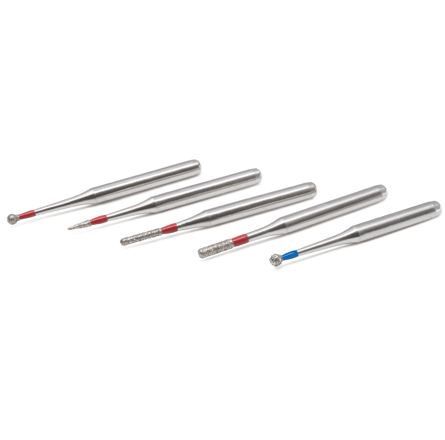 Kit con 5 fresas ideal para diferentes procedimientos odontológicos causando una mínima intervención.