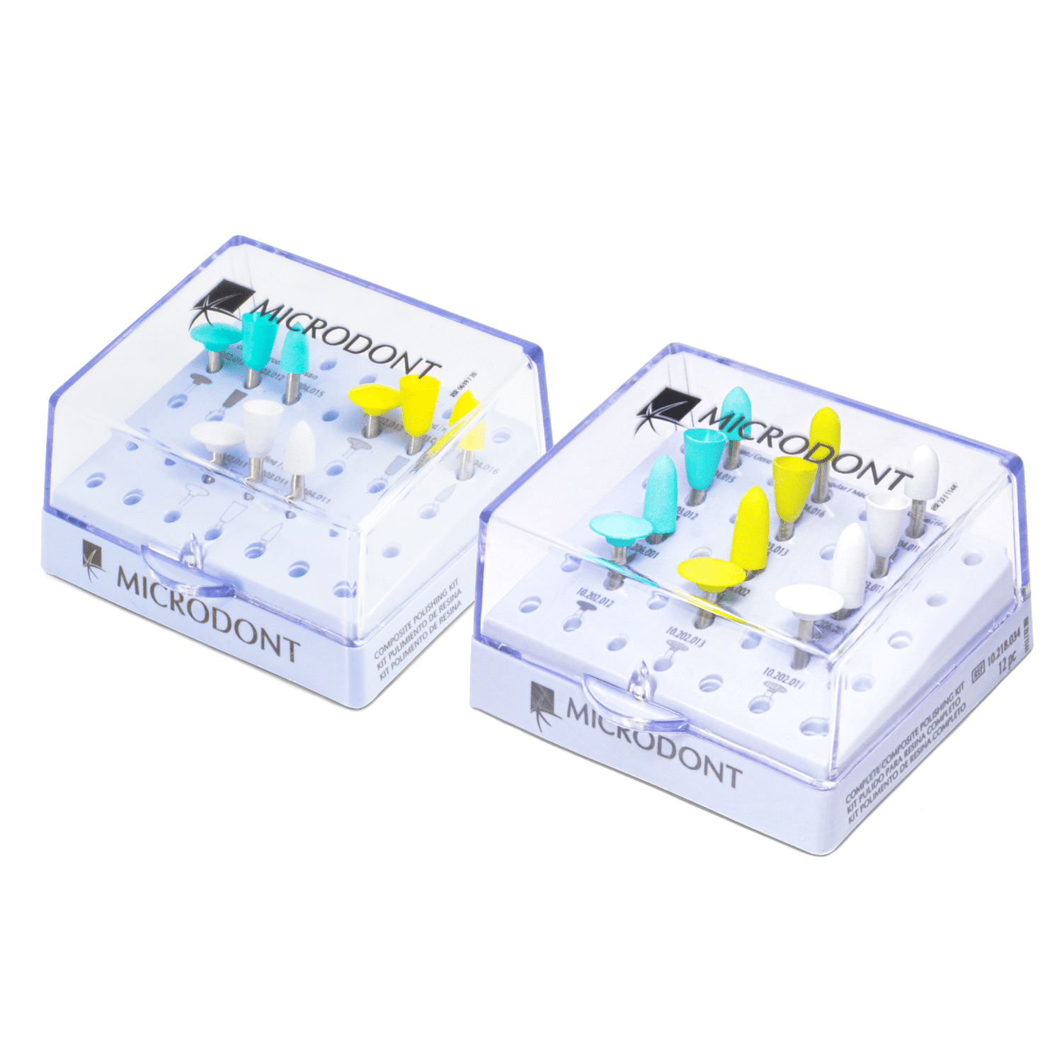 Kit para pulido de resina dental de la marca Microdont. Diseñados con vástago de contraángulo.