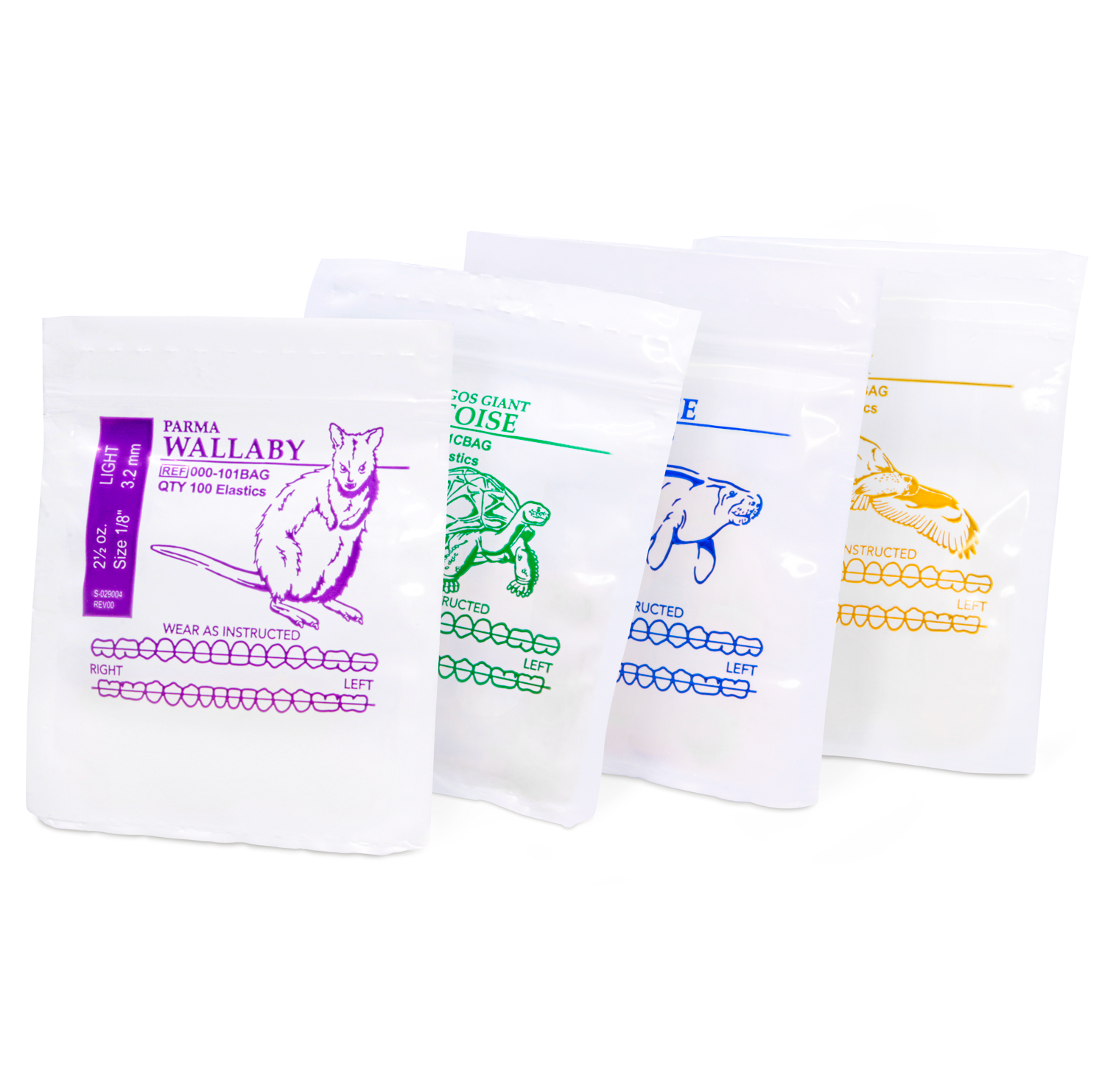 American Orthodontics ofrece diversos tamaños más utilizados de elásticos preempaquetados en paquetes para pacientes de la serie Wildlife que incluyen animales en peligro de extinción y amenazados de todo el mundo. Estos paquetes para pacientes atraen a pacientes de todas las edades, especialmente a aquellos preocupados por cuestiones ecológicas. Al usar fielmente sus elásticos, los pacientes pueden sentir que están haciendo su parte en la preservación y protección de estos animales. Este incentivo adicional puede ser solo el motivador para que los pacientes usen sus bandas elásticas. Y demostrar que te preocupas por el medio ambiente es una excelente manera de promover tu práctica.