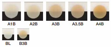 Los tonos A1B-A4B se mezclan con la mayoría de las dentaduras naturales. El tono Body