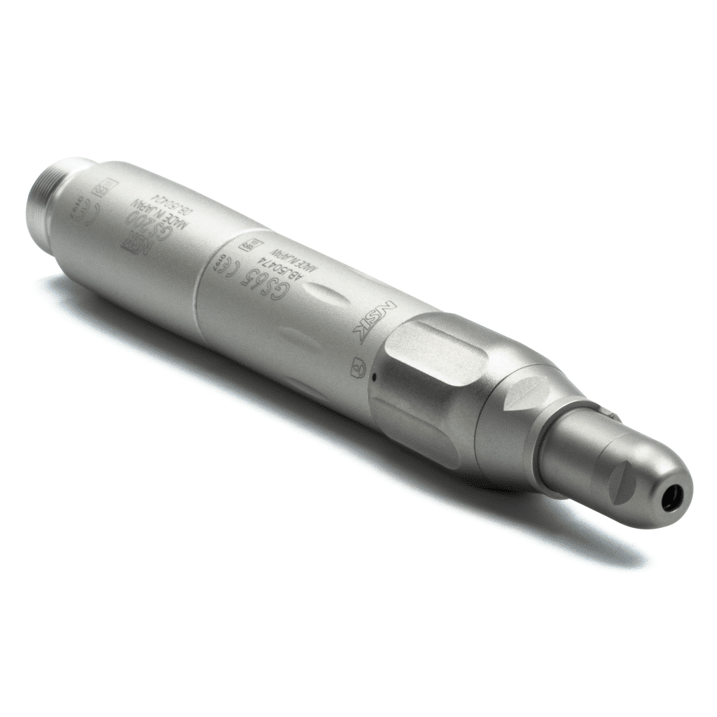 La pieza de mano recta de Baja Velocidad GS200, tiene una ergonómica sección triangular cruzada que provee una confortable y relajante sujeción para prolongados procedimientos clínicos.