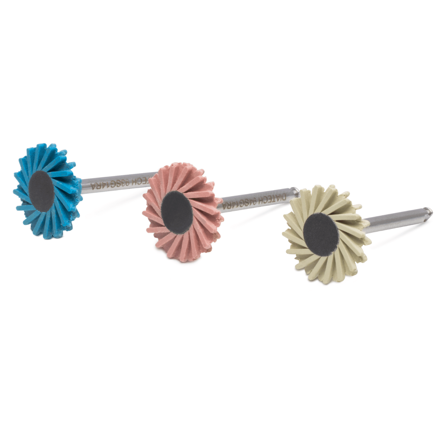 Mientras que las mini puntas sirven para suavizar y pulir las áreas interproximales y las áreas oclusales difíciles de alcanzar, las copas están especialmente indicadas para pulir la cúspide, pero también para el pulido oclusal en general.